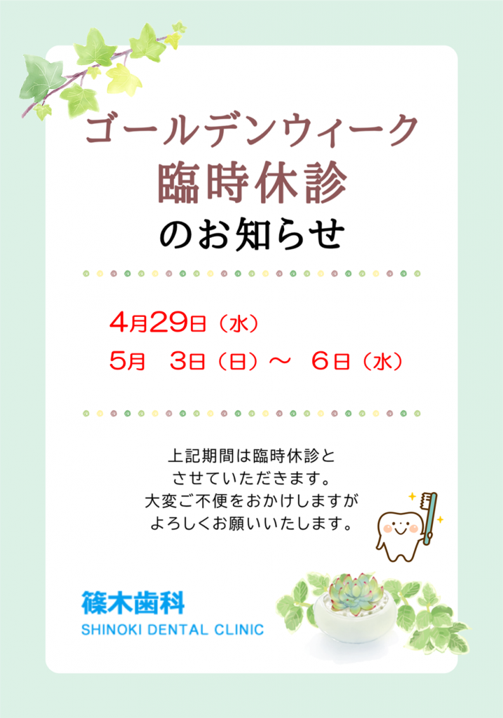 ゴールデンウィークの休診日のお知らせ